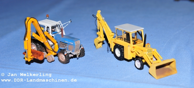 Feldhäcksler E 290 und sein Nachfolger E 282 neben dem MTS-50 Super mit THK-5 Gitteranhänger..