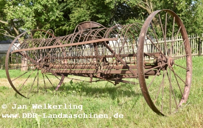 Arbeitsbreite unterscheiden. Der Hersteller war zu Beginn der VEB Landmaschinenbau Torgau/Elbe, später der VEB Erntebergungsmaschinen Neustadt/Sa. Werk IV. Der Pferderechen dient zum Zusammenziehen von losem Stroh