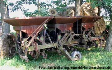 wird verändert durch 2 Paar Kettenräder mit der Möglichkeit des Weiterückens. Die Legetiefe beträgt 4...12 cm. Der Legemechanismus ist als Becherkette ausgeführt. Der