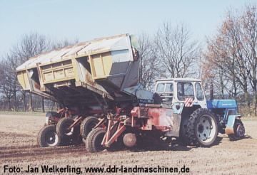 zu gewährleisten. Die Arbeitsgeschwindigkeit kann 5-7 km/h betragen, die Leistung beträgt dann bei maschineller Befüllung ca. 1,2 ha/h. Weitere technische Daten: