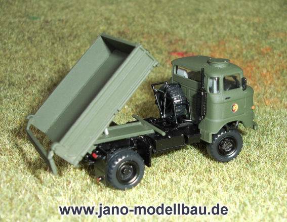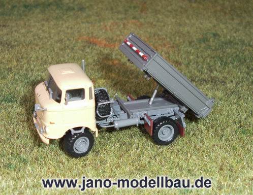 feststehend, Vorbildgerechte Nachbildung aller Details, wie z.B. Rahmen mit Ersatzradhalterung, Hydraulikanlage, Vorderachse mit kompletter und z.T. beweglicher Auflaufbremsanlage, freistehende