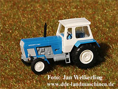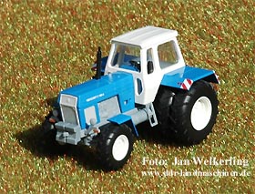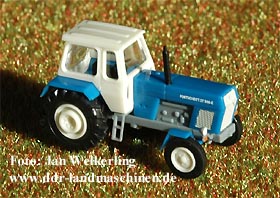 | Der ZT 300/303 und dessen verschiedene Varianten liefert die Fa. Busch nun auch für die Nenngröße TT. Die Detaillierung ist der Spur der Mitte angemessen und und auch die Proportionen sind sehr stimmig, das Vorbild ist unverkennbar. Die Beschriftung ist sauber und deutlich lesbar. Am Heck wurde der Kraftheber mit Ackerschiene und 2 Kupplungen nachgebildet. | ||