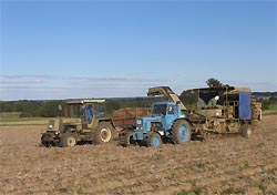 Dann mit 16 Jahren bot sich mir die Möglichkeit die Traktorfahrerlaubnis über die LPG erwerben zu können, was ich natürlich nutzte. Die Theorie machte richtig Spaß, und die Fahrstunden endeten gleich am ersten Tag mit der Prüfung!! Mein Fahrlehrer hatte wohl gemerkt, daß ich schon "etwas" Praxis besaß.....!! Fortan leistete ich nun Ferienarbeit in der LPG Pflanzenproduktion und durfte meine ersten Einsätze mit dem MTS 52 bei der Kartoffelernte fahren!! Ein irrer Ferienjob, und dafür bekam ich auch noch Geld!! Da eigentlich immer Arbeitskräftemangel in der Erntezeit herrschte, half ich dann auch an normalen Wochenenden aus, wo ich mir dann auch schon mal nen ZT aussuchen konnte. Später hatte ich dann einen festen ZT 300, und war nicht mehr "Springer" auf freien Fahrzeugen. So war ich dann oft mit Getreide-Anwalzen mit dem T 900 und den Cambridgewalzen, mit Strohabfuhr neben der K 453 oder zur Häckselabfuhr neben dem E 281 unterwegs.